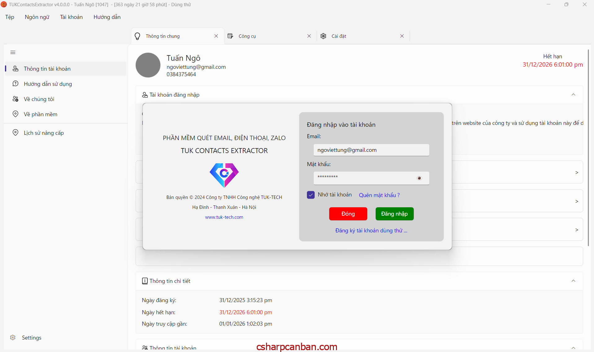TUK Contacts Extractor automatically collects emails, phone numbers, Zalo, WhatsApp, Skype, Telegram from websites, search engines, emails, and local files. Fast, accurate lead generation for sales and email marketing.