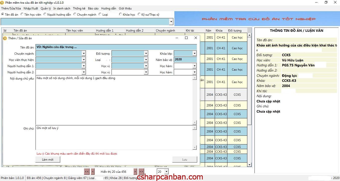 Phần mềm quản lý đồ án tốt nghiệp dùng cho trường học, nhẹ, không cần cài đặt, giá cả phải chăng, liên hệ: 0384375464