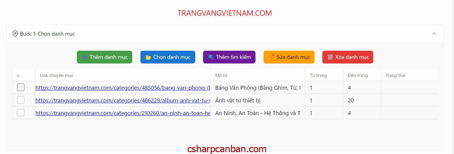 Quản lý danh mục quét, theo tỉnh thành, theo ngành nghề