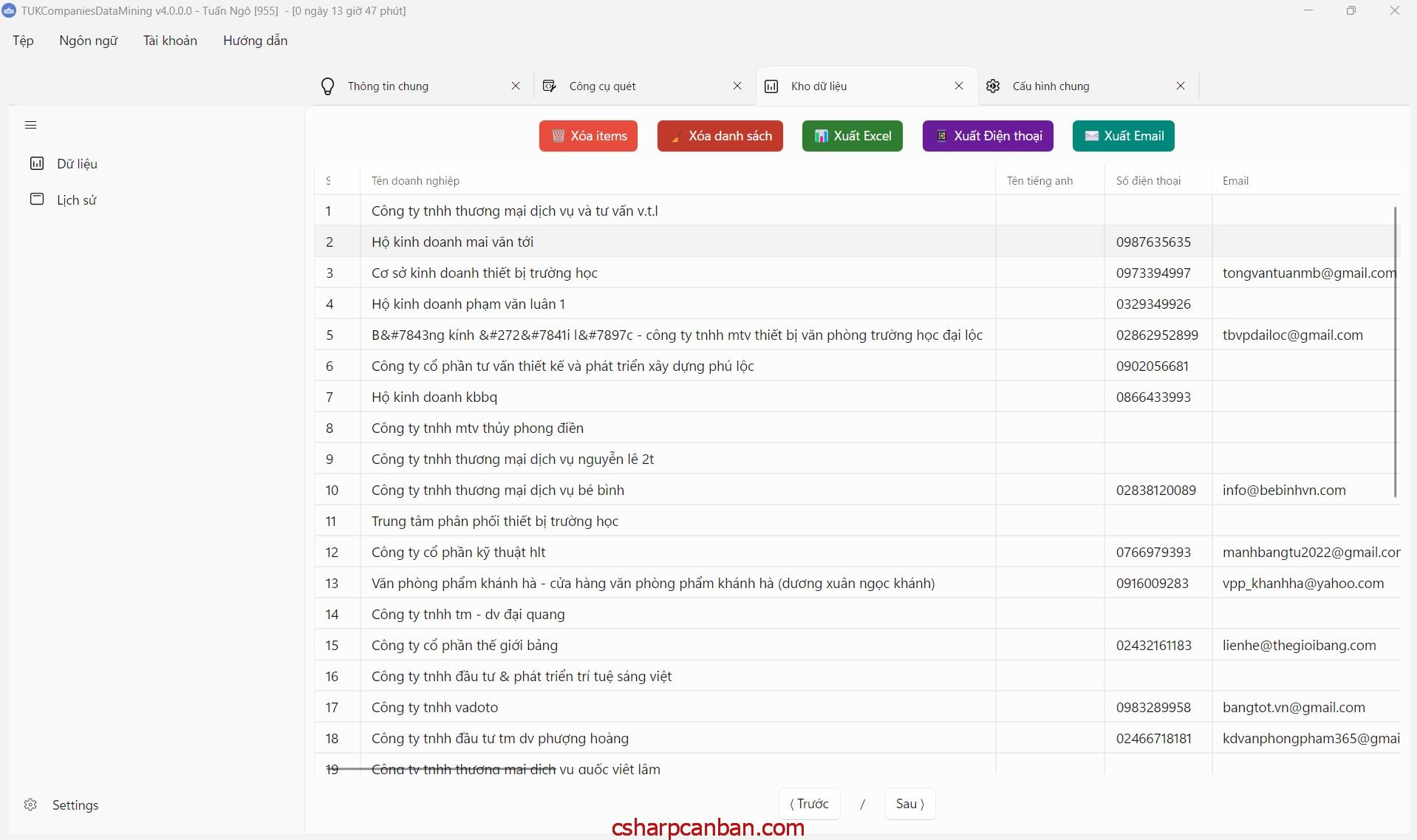 Chào mừng đến với phiên bản 4.0, bản nâng cấp đột phá của phần mềm Quét Thông Tin Doanh Nghiệp. Phiên bản này được thiết kế để tối ưu hóa tốc độ, độ chính xác và trải nghiệm người dùng, tích hợp những công nghệ hiện đại nhất để bạn khai thác dữ liệu doanh nghiệp Việt Nam một cách hiệu quả nhất.